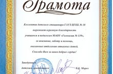 Коллектив детского стационара ГАУЗ ЦГКБ № 18 выражает огромную благодарность учащимся и педагогам гимназии за внимание, заботу и помощь, оказанные отделению отказных детей.