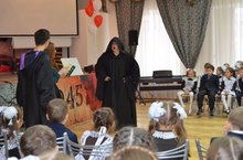 20 ноября по доброй традиции у первоклассников прошёл праздник «Посвящение в гимназисты». Ребята погрузились в игру с Гарри Поттером, Гермионой и Воланд де Мортом. Преодолев все трудности, первоклассники дали клятву гимназиста. Право вручить значки предоставили вожатым – ученикам 5-х классов. Первоклассники! Гордо носите звание гимназиста!