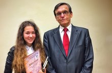 6 июня, в день рождения А.С. Пушкина, в День русского языка, в Казанском федеральном университете прошла торжественная церемония награждения победителей Молодежного научно-образовательного фестиваля, посвященного Дню русского языка. Приятно отметить, что среди участников были ученица 10В класса Маршева Настя и учитель русского языка и литературы Е.А. Егорова. В Международном конкурсе сочинений – эссе участвовало 120 человек не только из Республики Татарстан, но были и представители других регионов и городов России, кроме того работы подали студенты и аспиранты из Китая.Сочинение Насти Маршевой по теме «Язык- это история народа» было отмечено Дипломом III степени, который она получила из рук заместителя директора Института филологии и межкультурной коммуникации, доктора педагогических наук Искандера Энгелевича Ярмакеева. За подготовку победителя конкурса эссе грамотой была награждена Елена Александровна Егорова. Гордимся их успехами и желаем дальнейших творческих открытий! -