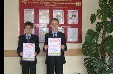 Администрация гимназии поздравляет Капралова Мишу и Капралова Сашу, учащихся 5б класса (учитель Романова Л.Ю.), занявших 1 место во Всероссийском блиц-турнире по русскому языку «Без ошибок». Желаем ребятам дальнейших побед и успехов!