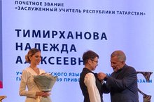 6 октября в ТАГТОиБ им. М.Джалиля состоялись торжества, посвященные Дню русского языка. Поздравил педагогов и вручил награды лучшим учителям Президент Республики Татарстан Р.Н. Минниханов. Звание «Заслуженный учитель Республики Татарстан» было присуждено учителю русского языка и литературы Тимирхановой Надежде Алексеевне.