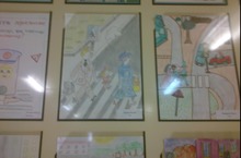 В фойе школы размещена выставка рисунков учеников 1-4 классов о правилах дорожного движения. Детские рисунки призывают знать и выполнять правила дорожного движения.