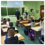 Сегодня,27 октября 2021 г. в «День безопасности дорожного движения», инспектора ГБДД провели с учениками начальных классов беседу по правилам дорожного движения. В ходе беседы сотрудники дорожной полиции подробно рассказали учащимся о состоянии аварийности в районе, и причинах совершения дорожно-транспортных происшествий. Особое внимание было уделено соблюдению ПДД в качестве пешеходов и ответственности за данное нарушение. Помимо этого, инспекторы движения разбирали с учащимися основные ошибки пешеходов, обсуждали с ребятами психофизиологические особенности их возраста, которые приводят к ДТП, такие как склонность к юношескому максимализму и неправильность оценки дорожной обстановки. А также, инспекторы ДПС объяснили принципы работы светоотражателей на форменной одежде сотрудника полиции и его патрульного автомобиля, продемонстрировал специальные средства, с которыми работают сотрудники Госавтоинспекции на дорогах. Главной целью профилактической беседы предупредить ребят о необходимости соблюдения правил дорожного движения. Быть осмотрительными при управлении велосипедом, а так же о необходимости использование светоотражающих элементов.