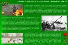Сегодня классные часы посвящены памятной дате- 27 января - День снятие блокады города Ленинграда (1944год). Блокада Ленинграда — одна из самых страшных и трагических страниц в истории Великой Отечественной войны. Ужасное испытание для жителей города на Неве длилось почти 900 дней (с 8 сентября 1941 г. по 27 января 1944 г.). Ленинград находился в окружении фашистских захватчиков и у жителей, не было никакой возможности вырваться из этого ада. Из двух с половиной миллионов жителей, проживающих в северной столице до начала войны, за время блокады только от голода и холода умерло более 600 000 человек, а ещё полторы сотни горожан погибло от нескончаемых бомбёжек и обстрелов. Всего погибших насчитывалось 850 тысяч человек. Несмотря на голод, сильные морозы, отсутствие отопления и электричества, ленинградцы мужественно выстояли и не отдали врагу родной город.