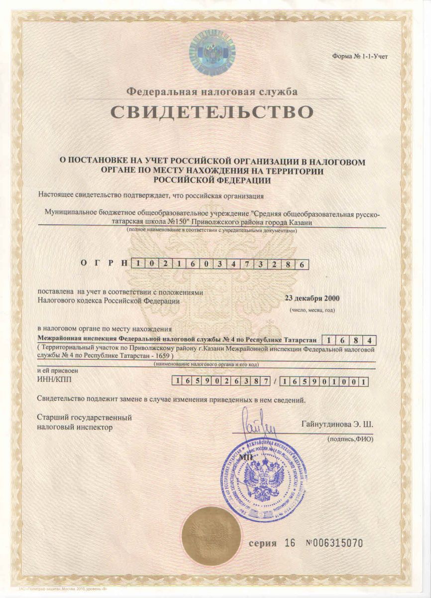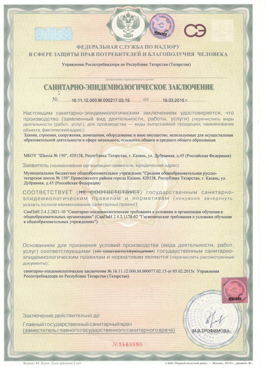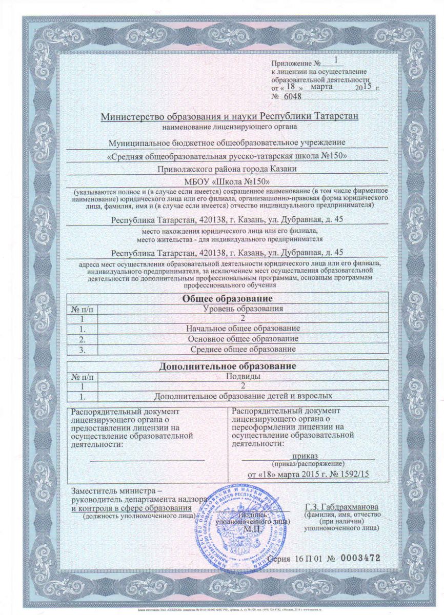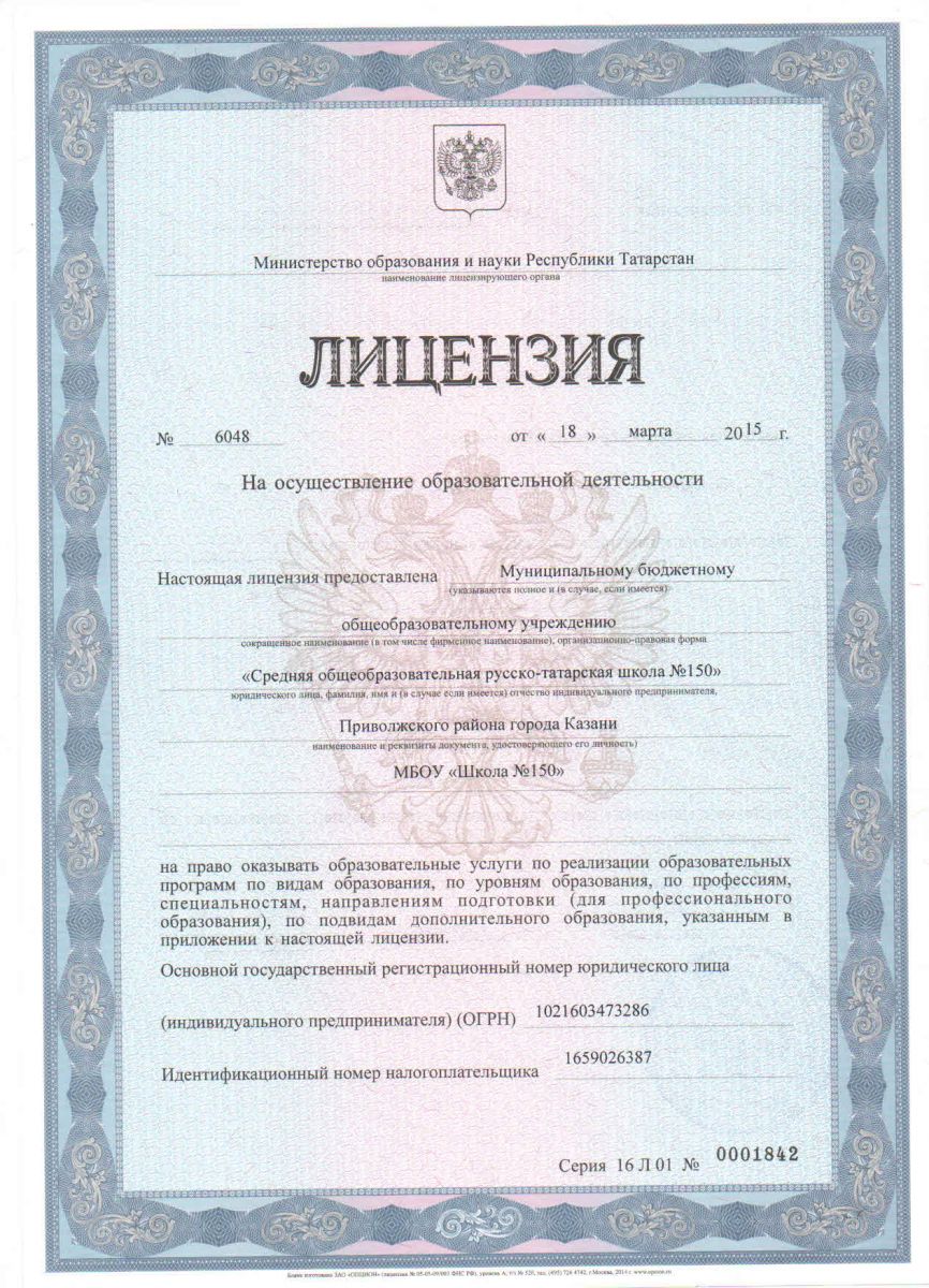 Муниципальное бюджетное общеобразовательное учреждение «Средняя общеобразовательная русско-татарская школа №150» Приволжского района города Казани
