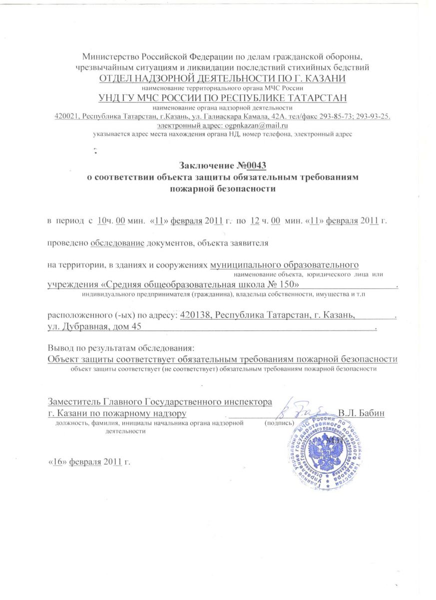 Заключение о соответствии объекта защиты обязательным требованиям пожарной безопасности