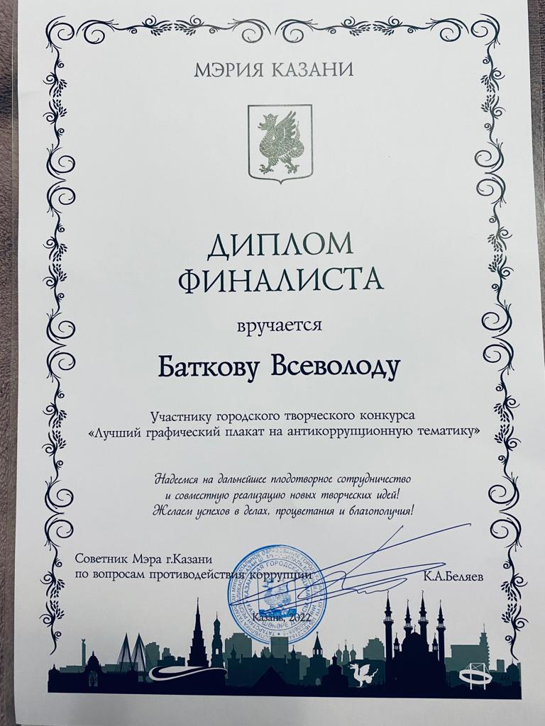 Диплом финалиста городскогог конкурса "Лучший графический плакат на антикоррупционную тематику"