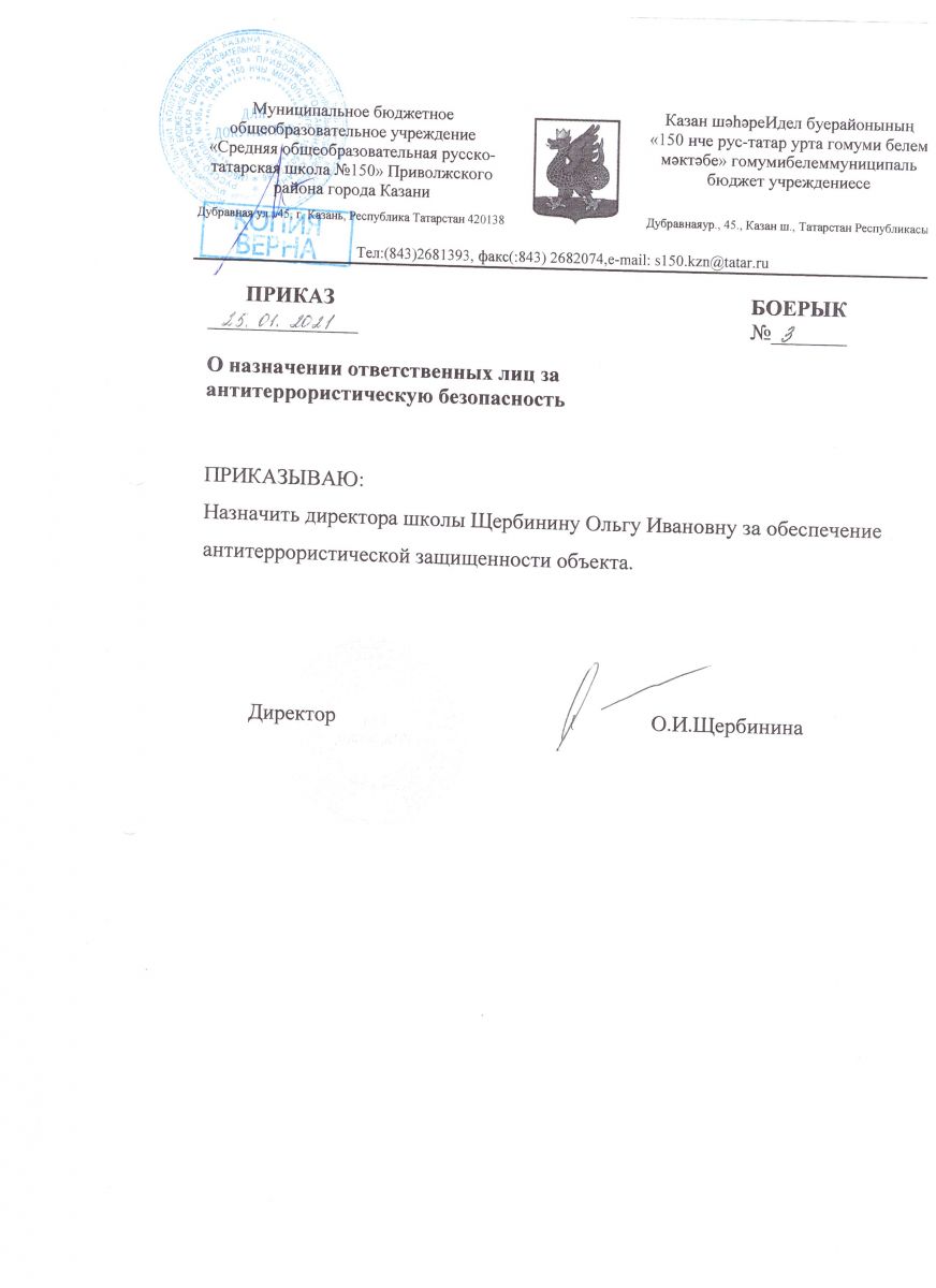 Приказ о назначении ответственных лиц за антитеррористическую безопасность