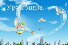Для учащихся 1-11 классов состоялся Урок Мира, целью урока явилось стремление содействовать формированию у учащихся гражданских и патриотических чувств, социальной солидарности, справедливости, ответственности, готовности служить Родине и укреплению ее единства; воспитание гуманистических качеств личности обучающихся, уважения к другим народам и странам; формирование культуры мира, уважения прав человека.