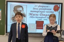 Сегодня 15 февраля в нашей школе провели конкурс чтецов "Красная ромашка', посвящённый творчеству поэта-героя Мусы Джалиля. В конкурсе чтецов участвовали 25 человек из 1 - 6 классов. Дети рассказывали разные стихи поэта.
