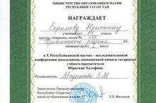 Поздравляем участников республиканской НПК им. Хальфина Андрееву Екатерину 10 класс и Ефимову Кристину 11 класс. Подготовили педагоги Тямаева Марина Николаевна и Мадышева Зульфия Минагимовна