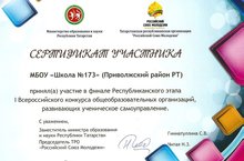 Наша школа получила сертификат участника Республиканского этапа I Всероссийского конкурса организаций, развивающих ученическое самоуправление!!!