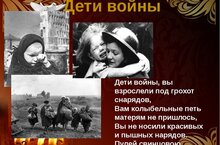 26 апреля на ИК-19 в 10 г классе прошел классный час «Дети войны». В преддверии 77- летия Победы мы с гордостью говорим о ветеранах Великой Отечественной войны, но хочется вспомнить и о детях, которым выпало страшное, голодное детство, опаленное войной. Это поколение тесно примыкает к ветеранам и помнит военное и послевоенное время. «Дети войны» - это поколение бабушек и дедушек. Война отняла у них светлое и радостное детство, искалечила детские судьбы, ведь начало войны совпало для них с началом жизни. Их детство прервалась 22 июня 1941 года.