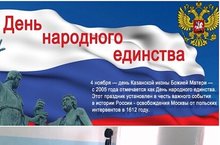Одним из самых молодых государственных праздников России является День народного единства. Праздник отмечается в честь освобождения Москвы от польских интервентов в 1612 году. 29 октября в ИК-19 классный руководитель 12д класса Рылова О.Г. провела мероприятие, посвященное этой памятной дате.
