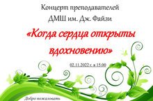 Концерт преподавателей ДМШ им. Дж. Файзи "Когда сердца открыты вдохновению" 02.11.2022