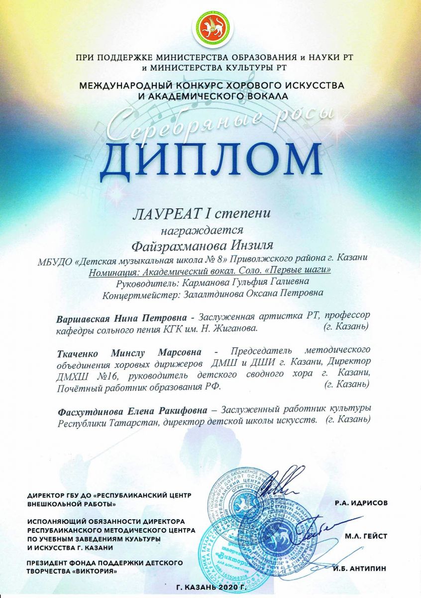 1 марта - II Международный конкурс хорового искусства и академического вокала «Серебряные росы»: Файзрахманова Инзиля - Лауреат I степени -Диплом; Камилева Лейсан - Лауреат II степени -Диплом; - младший хор "Утро" - Дипломант I степени -Диплом. Руководитель: Карманова Г.Г., концертмейстер: Залалтдинова О.П. ПОЗДРАВЛЯЕМ!