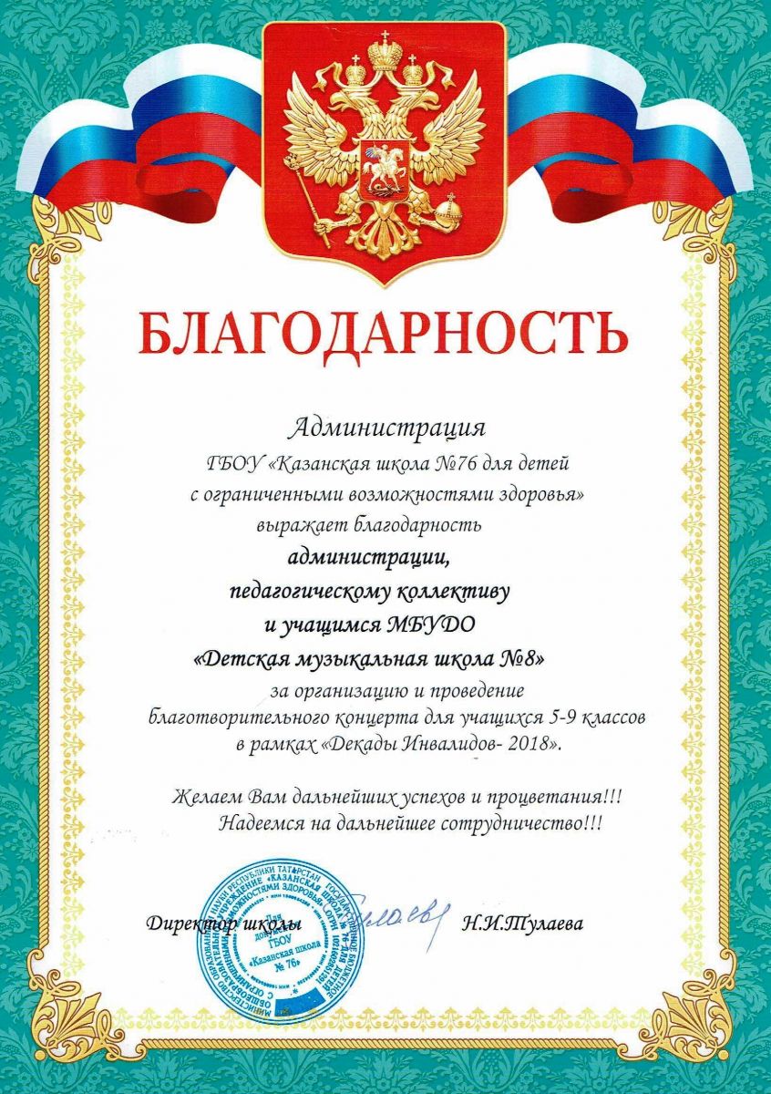 Выступление учащихся ДМШ № 8 в рамках Декады инвалидов, приуроченной к Международному Дню инвалидов в ГБОУ "Казанская школа № 76 для детей с ограниченными возможностями здоровья".