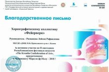 15.06.18 - выступление хорегорафического коллектива "Фейерверк" во II ежегодном Республиканском фестивале искусств "The Kremlin Confederation of Art", приуроченного к Чемпионату Мира по футболу - 2018 ! Руководитель: Ризванова Лейсан Рафаилевна