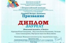 22 октября - II Всероссийский конкурс творческих дарований "Многоцветье осенней палитры". Головизнине Е. - Лауреат I степени, преподаватель: Карманова Г.Г.; Нуруллин А. - Лауреат II степени, преподаватель: Султанова Р.Р.; младший хор - Лауреат II степени, руководитель: Каримова Ю.Г.