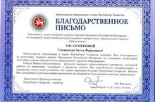 Благодарственное письмо МОиН РТ 12.12.2016