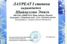 25 декабря - городской конкурс эстрадного вокала "Рождественская сказка". ПОЗДРАВЛЯЕМ призеров конкурса - Лауреаты I степени: Головизнина Елизавета, Шаймуллин Эмиль; Лауреаты II степени: Дуэт "Ты и Я" (Аблухаковы Камилла и Аделина), Закирова Миляуша; Лавренова Яна - Лауреат III степени; вокальный ансамбль "Колокольчики" - Дипломант I степени; Дуэт: Вафина Динара и Шаймуллин Эмиль - Дипломант II степени