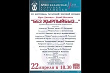 22 апреля в 18.30 в ГБКЗ состоится XII фестиваль татарской хоровой музыки Муса Джалиль - Назиб Жиганов "БЕЗ ҖЫРЛЫЙБЫЗ..." (музыкально-поэтическая композиция). В фестивале принимают участие: образцовый хор "Певуньи", хор мальчиков "Канцона", младший хор "Колокольчики".