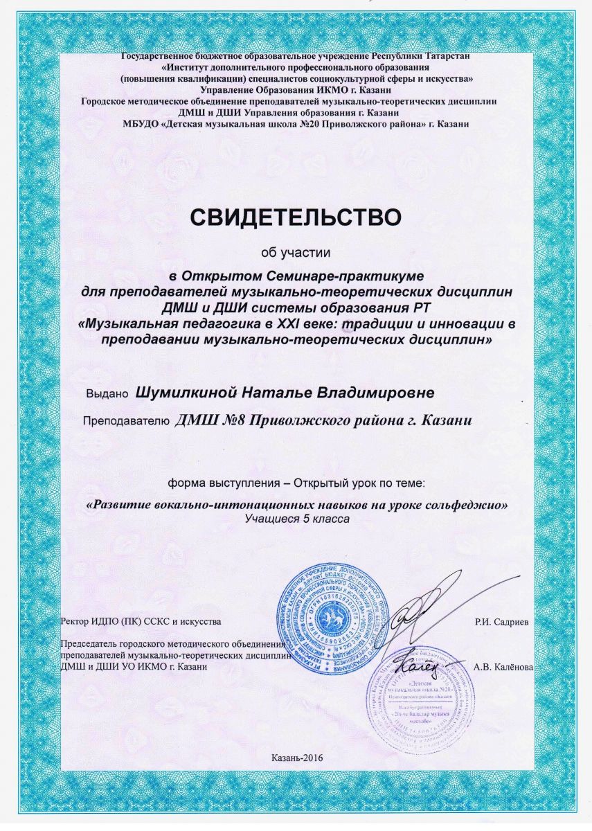 Международный уровень: Баранова С.А. -участие в семинаре-мастер классе с композитором Норман Фут, 2
