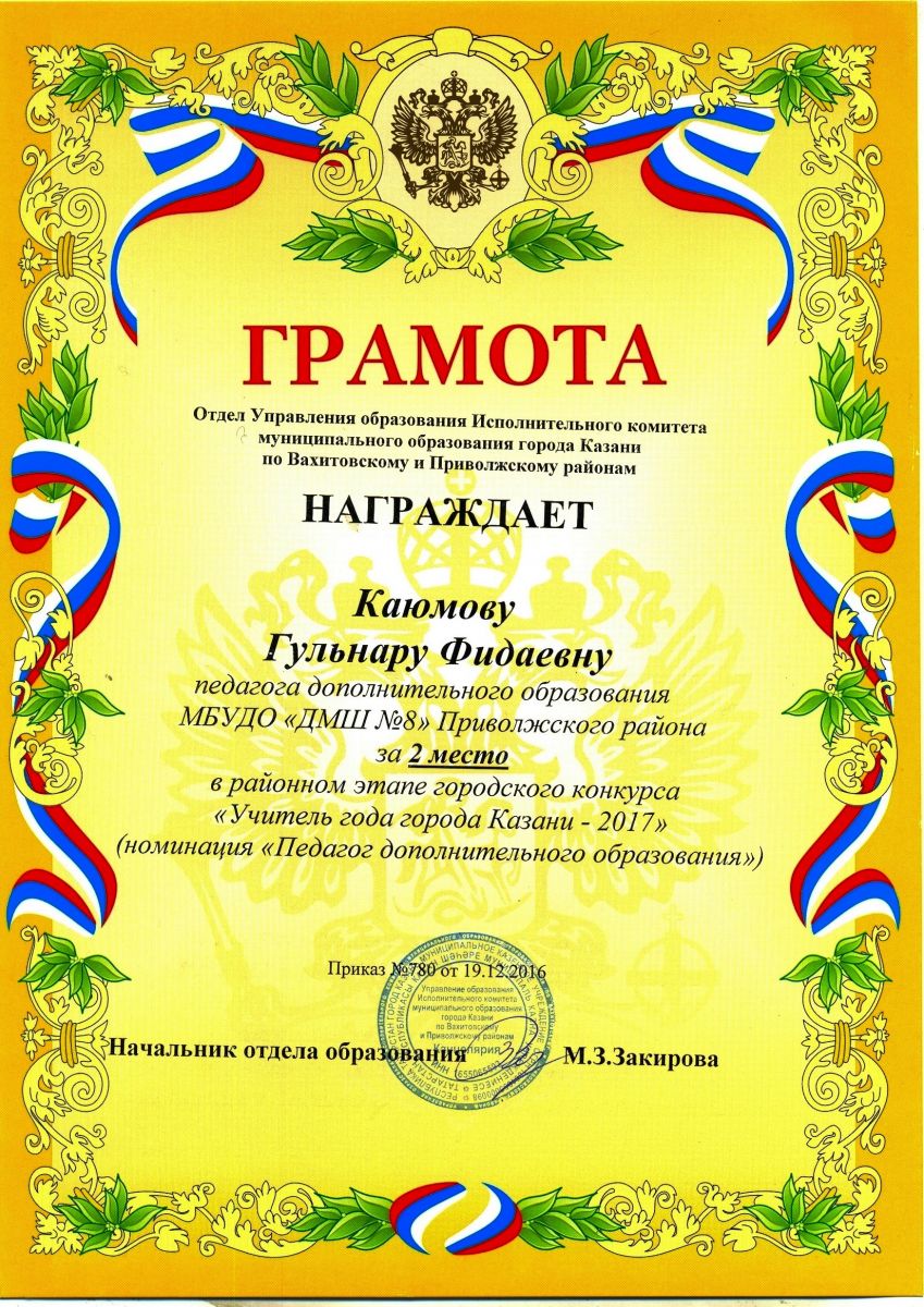 Районный этап городского конкурса «Учитель года города Казани - 2017» (Каюмова Г.Ф.)