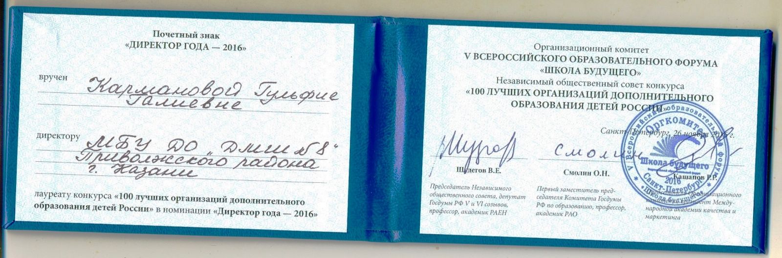участие в профессиональных конкурсах: - Почетный знак "ДИРЕКТОР ГОДА - 2016"