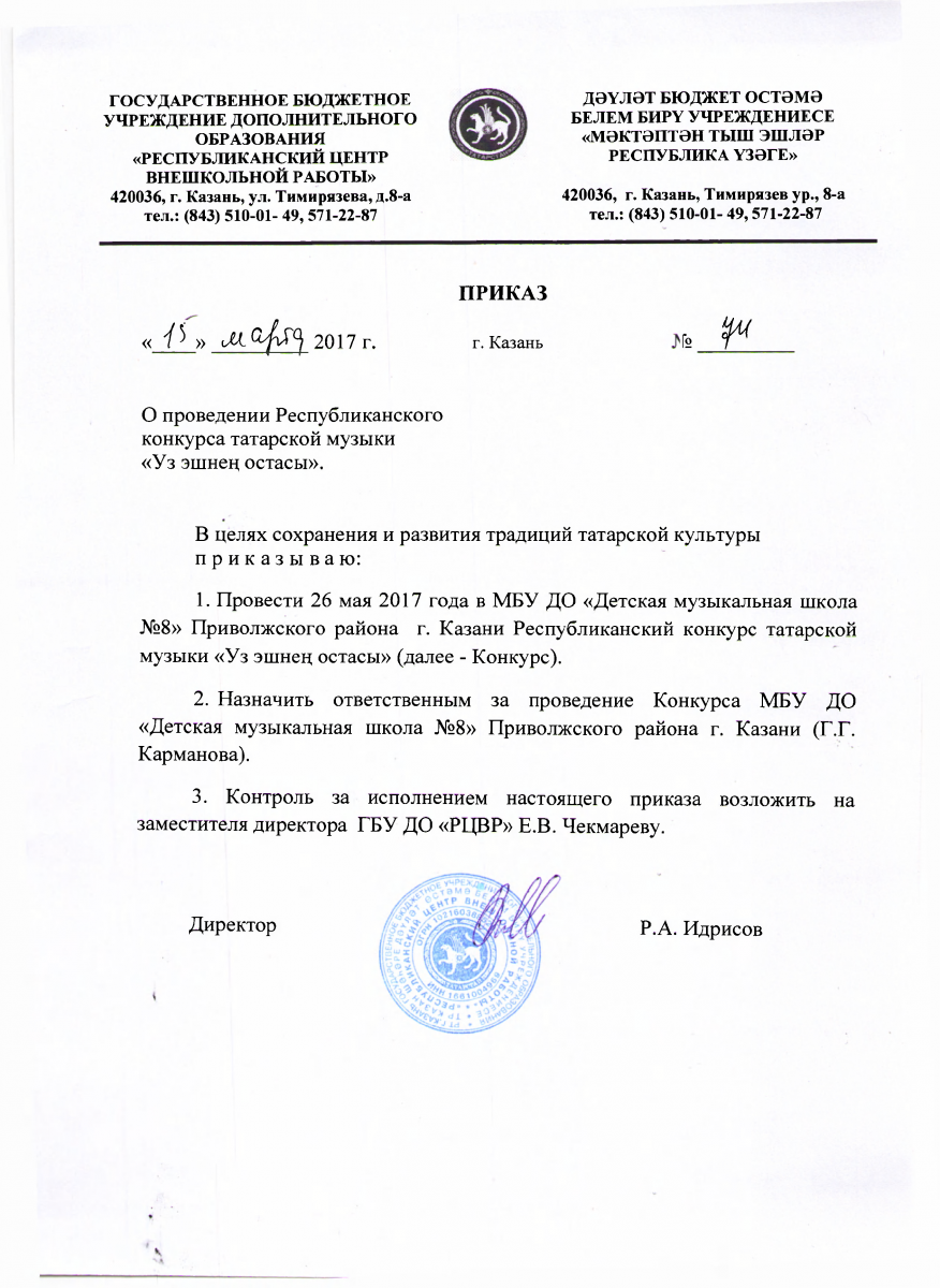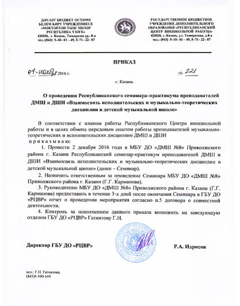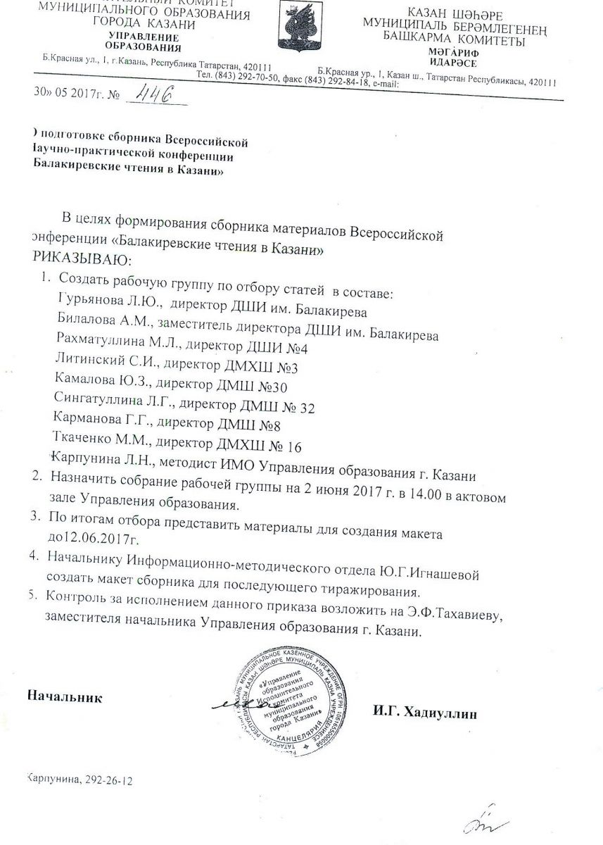- всероссийский уровень - Программа творческой встречи ДМШ № 8 и г.Йошкар-Ола; Приказ Балакиревские чтения