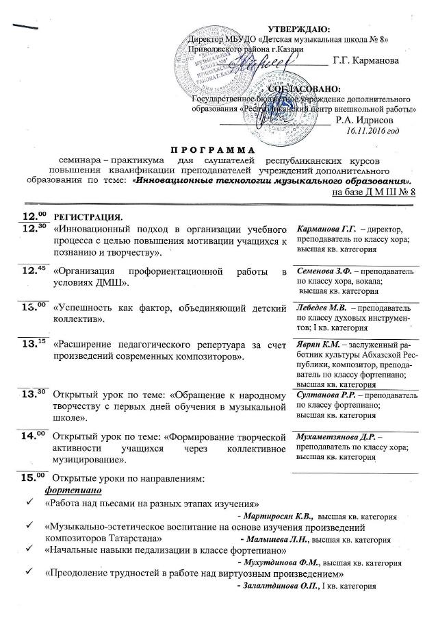 - Сотрудничество с РЦВР - Семинар для слушателей ПК (1 стр); Семинар для слушателей ПК (2 стр)