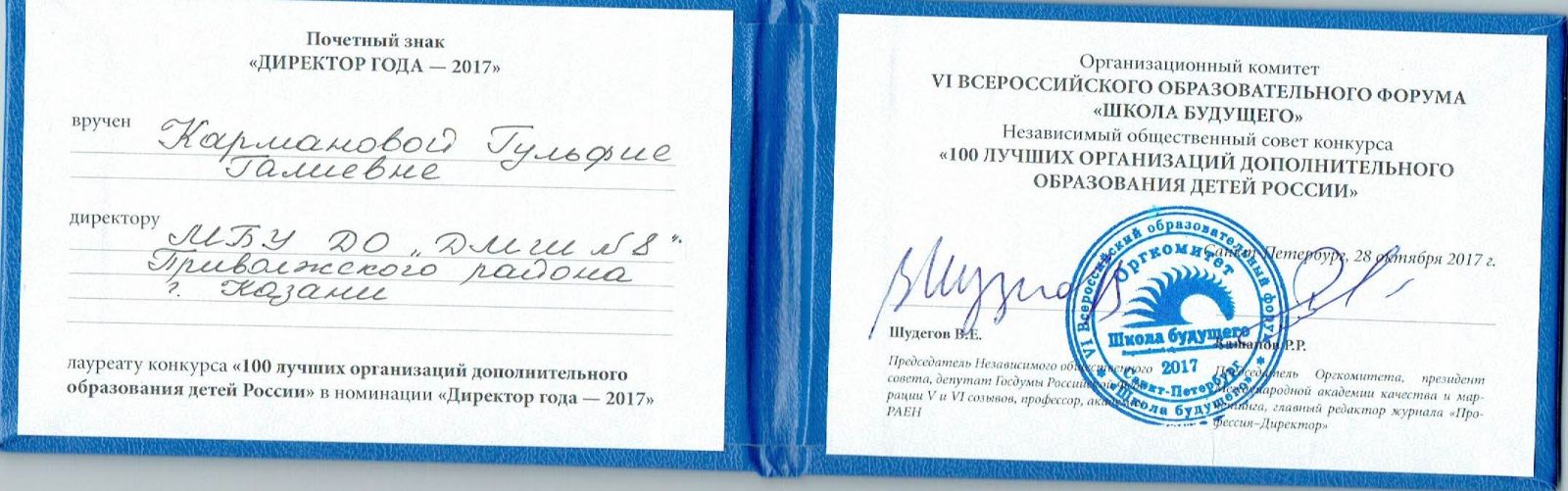 - Почетный знак "Диреток года - 2017" - СВИДЕТЕЛЬСТВО (г.Санкт-Петербург)
