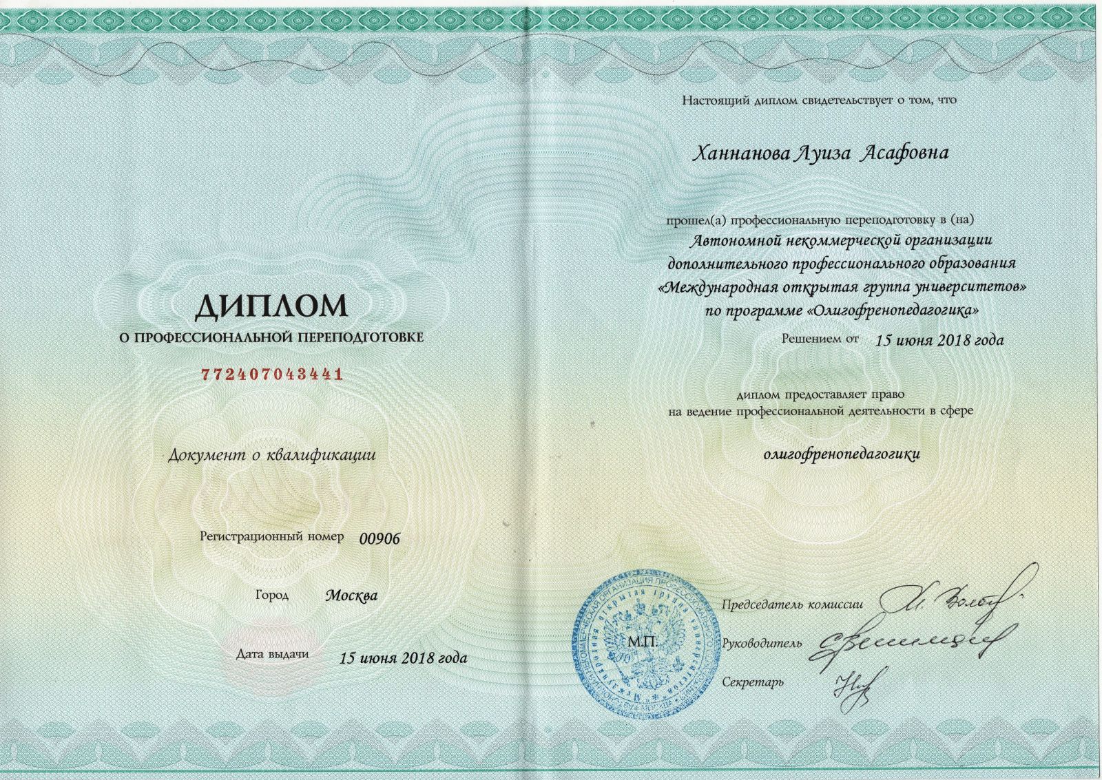Диплом о профессиональной переподготовке (Ханнанова Л.А.)