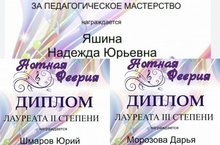 Поздравляем учащихся класса преп. Яшиной Н.Ю. - Шмаров Юрий - Лауреат II степени, Морозова Дарья - Лауреат III степени