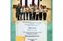 Победа Сводного Ансамбля "Элегия" ДМШ20 - Лауреаты I степени- на II Республиканском конкурсе фестивале ансамблевого мастерства "Прекрасен наш Союз" ! ! ! Браво - учащимся класса скрипки Галимуллиной Лейсан Ахмадулловны, класса виолончели Глуховой Елены Евгеньевны и класса флейты Черновой Татьяны Юрьевны