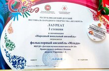 Фольклорный Ансамбль "Млада" ДМШ №20 - Лауреат I степени Республиканского детского фестиваля народного творчества "БЕЗ БЕРГЭ"!!! Руководитель ансамбля Самойлова Александра Васильевна, Заслуженный работник культуры, доцент кафедры этно - художественного творчества КазГИК , преподаватель ДМШ №20!