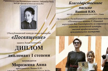 Поздравляем Морозкину А. - учащаяся класса преп. Яшиной Н.Ю. - Дипломант I степени I Республиканского конкурса юных пианистов "Посвящение" памяти Луизы Климовой.