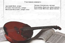 22 октября в 18.00 в зале ДМШ № 20 состоится Концерт мастеров искусств "Чарующая домра": Арсений Цой - домра, Гульназ Хасамеева, домра, Наталья Бегутова - домра-альт, Эдуард Дементьев - гитара, Екатерина Князева - фортепиано, Анастасия Шатова - фортепиано