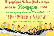 26 августа в ДМШ № 20 состоялся Концерт класса преп. Киселевой Т.В. "В мир музыки - с радостью!"