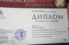 Конкурс "Чайковский из века в век" - Яхин Муса - Лауреат II степени в номинации фортепиано-соло, преп. Киселева Т.В., на базе ДШИ № 2 им. П.И.Чайковского г..Ижевск
