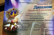 V Республиканский фестиваль-конкурс "Великая Победа-2019" - Хореографический коллектив "Кристалл", преп. Пигасова Н.В., Щербакова К.Е. - Лауреат I степени в номинации "Хореография"