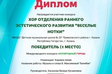 Хор отделения раннего эстетического развития «Веселые нотки» - Победитель (1 место) ,рук. Хасанова В.Х.