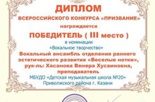 Вокальный ансамбль отделения раннего эстетического развития «Веселые нотки» - Победитель (III место)