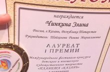 Поздравляем Чинкину Элину (преп.Шайхелова Р.М.) - Лауреата I премии на конкурсе , МОЛОДЕЦ!!! ЖЕЛАЕМ НОВЫХ ТВОРЧЕСКИХ ПОБЕД!!!