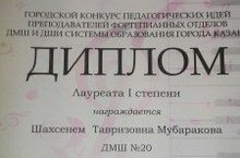 Поздравляем Мубаракову Шахсенем Тавризовну с победой в Городском конкурсе педагогических идей преподавателей фортепианных отделов ДМШ и ДШИ системы образования города Казани.