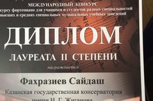 27-29 января в КГК им.Н.Г.Жиганова прошел Международный конукрс по курсу фортепиано для учащихся и студентов разных специальностей в которм принял участие преподаватель по классу народных инструментов ДМШ №20 и студент КГК им.Н.Г.Жиганова - Фахразиев Сайдаш Талгатович - стал Лауреатом II степени.