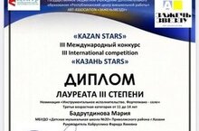Поздравляем Бадрутдинову Марию - учащуюся класса вокала преподавателя Хайруллиной Фариды Яхиевны - с успехом и победой в III Международном конкурсе "Казань Stars"