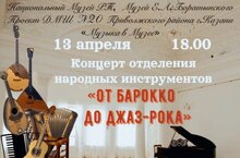 13 апреля, стартовал новый проект ДМШ №20 - "Музыка в Музее"! Национальный Музей РТ, Музей им.Е.А.Боратынского, открыл свои двери для учащихся и преподавателей отделения народных инструментов нашей школы! В уникальном бальном белом зале Музея выступили солисты, лауреаты, победители многочисленных конкурсов - учащиеся ДМШ №20!