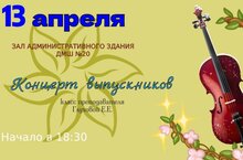 13 апреля, состоялся Концерт Выпускников 2022 - 2023 ДМШ №20, класс преподавателя игры на виолончели, Глуховой Елены Евгеньевны!