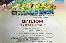Боковня София- солистка творческой мастерской преподавателя эстрадно-джазового вокала Риммы Миргасимовны Шайхеловой - победитель Всероссийского конкурса-фестиваля исполнительского мастерства "От Волги до Енисея"!!! Поздравляем!!!